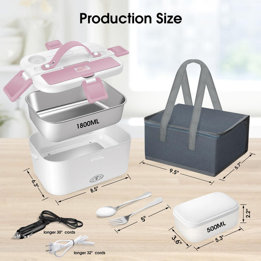 Electric Lunch Box 80W Food Heater 110V/12V~24V Pink